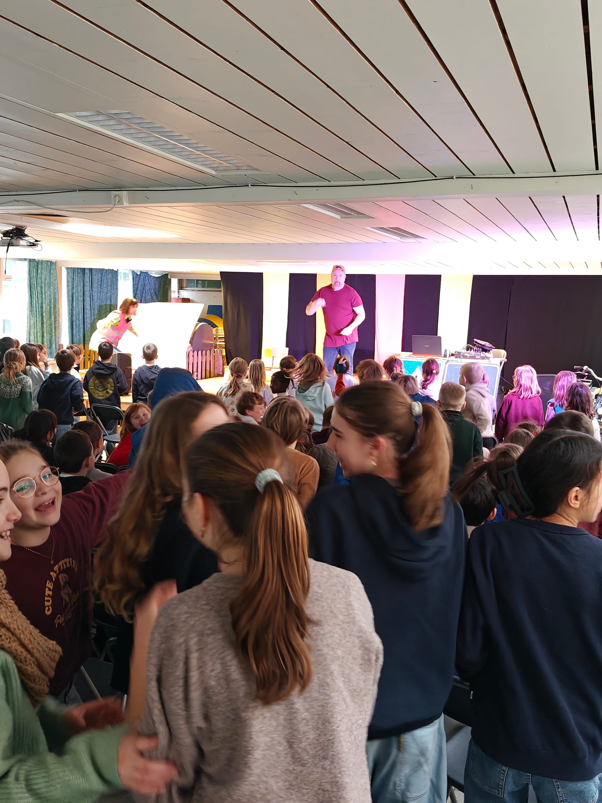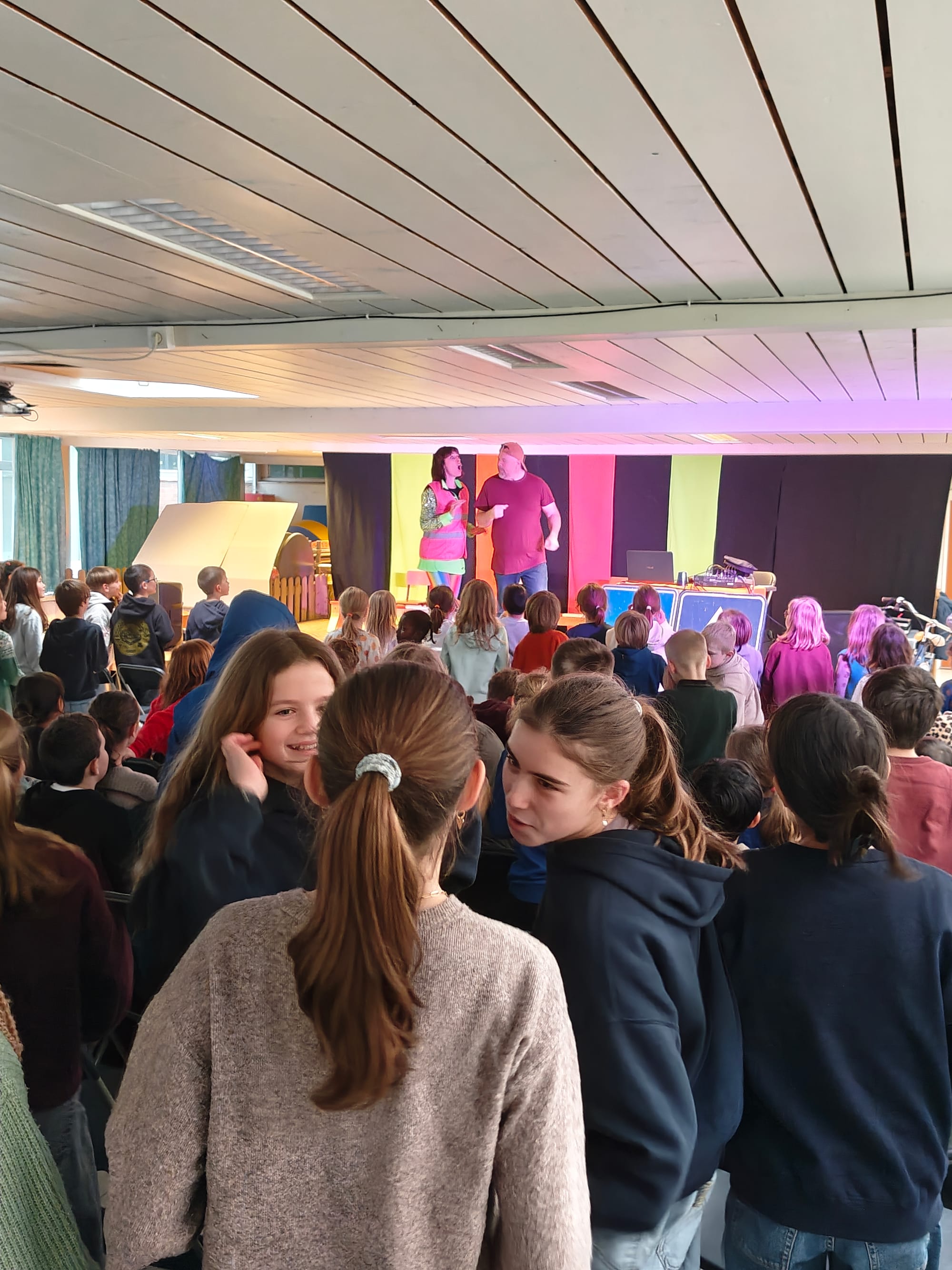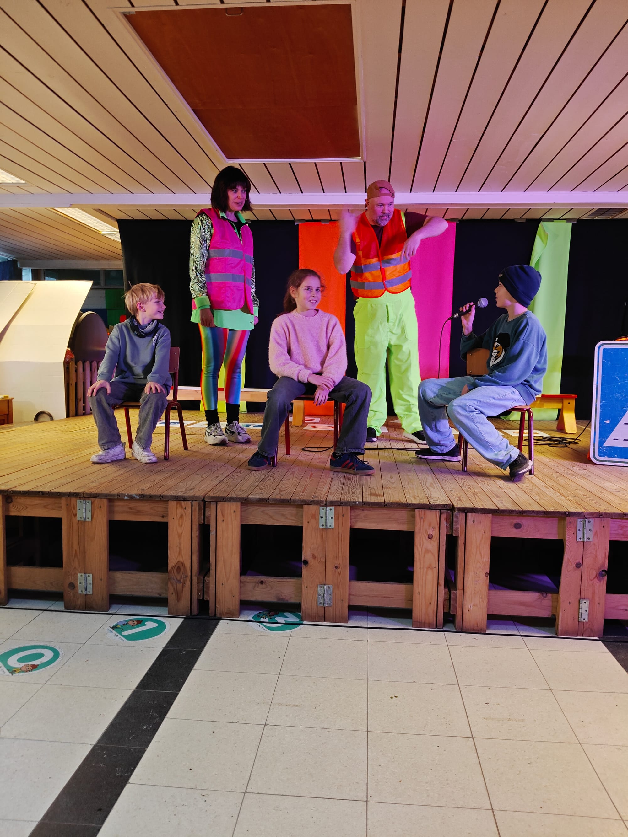 Dankzij de verkeerssubsidie van de stad Brugge konden we 'Duo Fluo' uitnodigen. Een komisch duo dat de kinderen van L3-L6 informeert over het belang van fluo en verkeersveiligheid.
