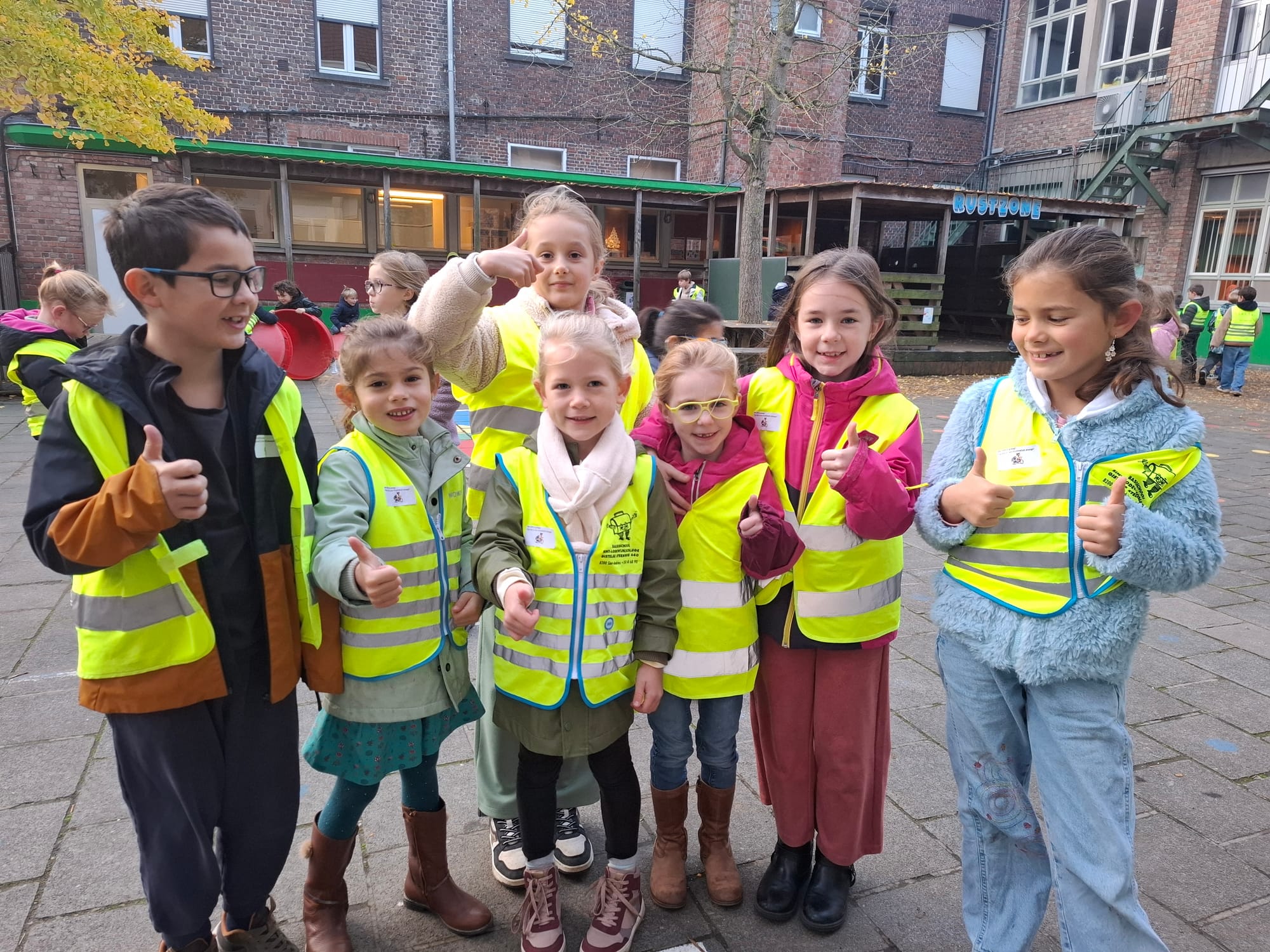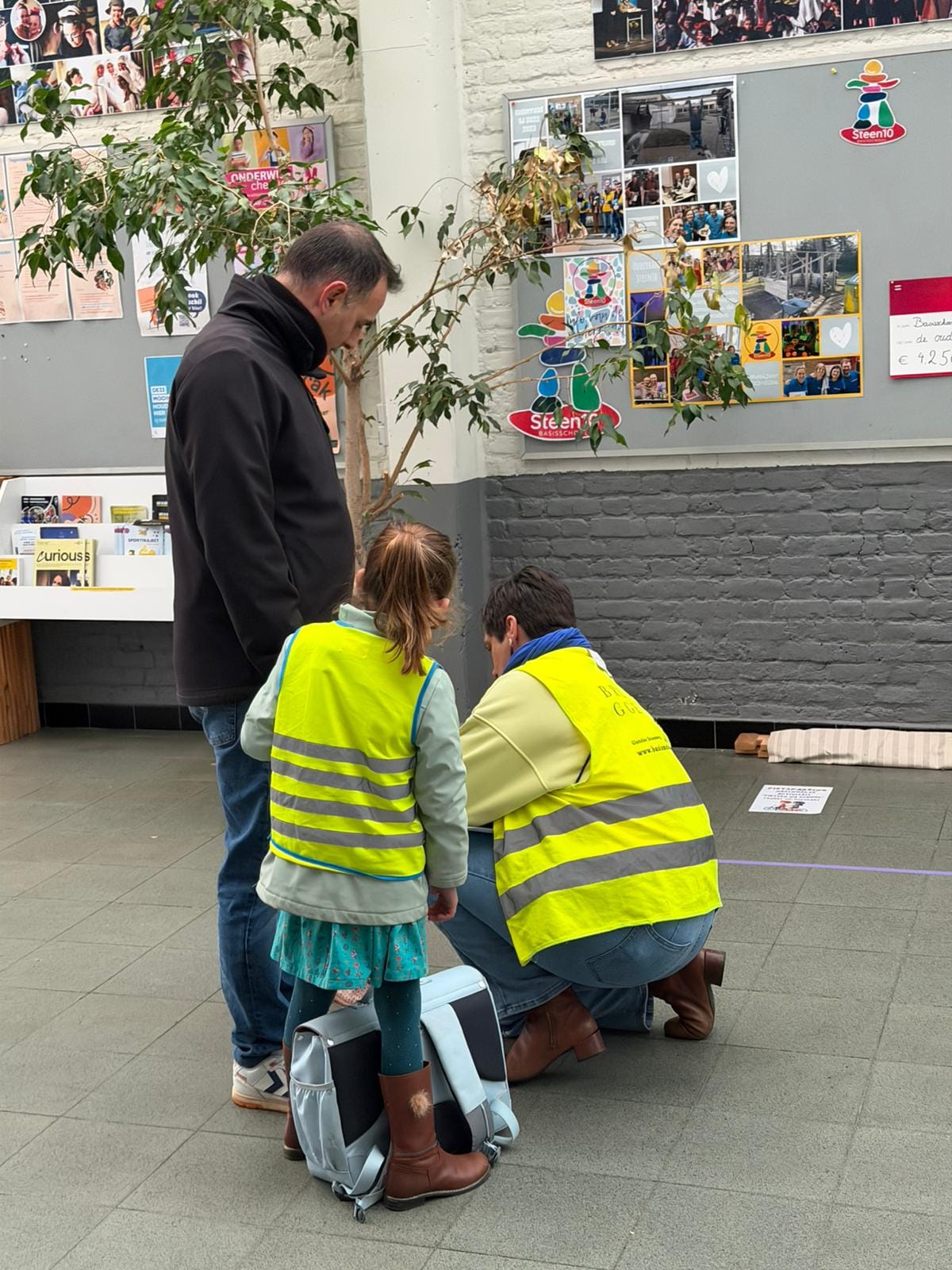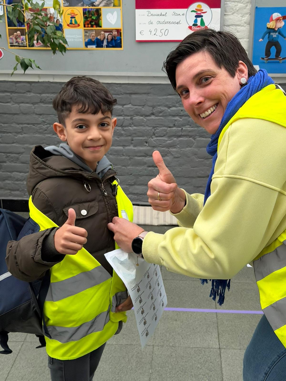 De donkere maanden zijn aangebroken. Zichtbaarheid in het verkeer is tijdens deze periode nog belangrijker. Daarom zetten we op school hard in rond het sensibiliseren. De leerlingen worden aangemoedigd om een fluojasje en een helm te dragen.