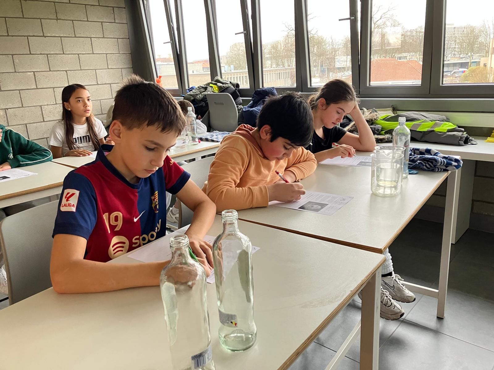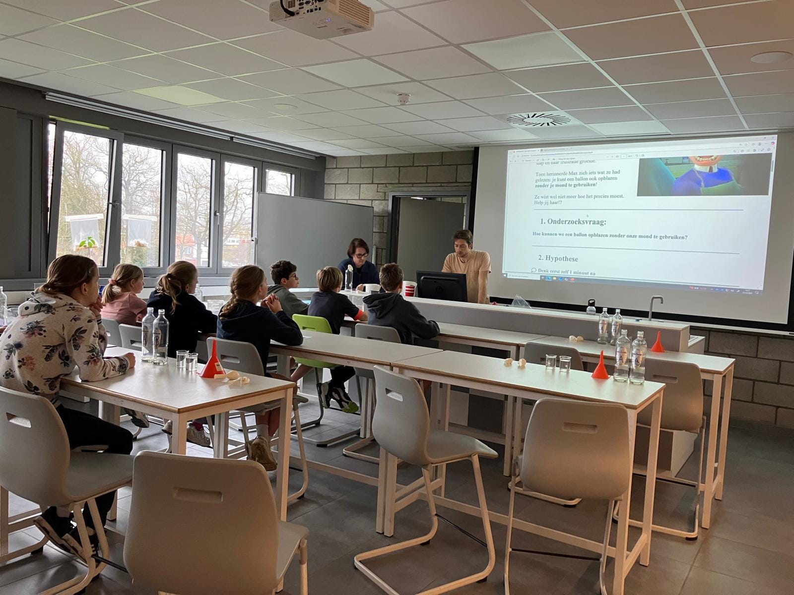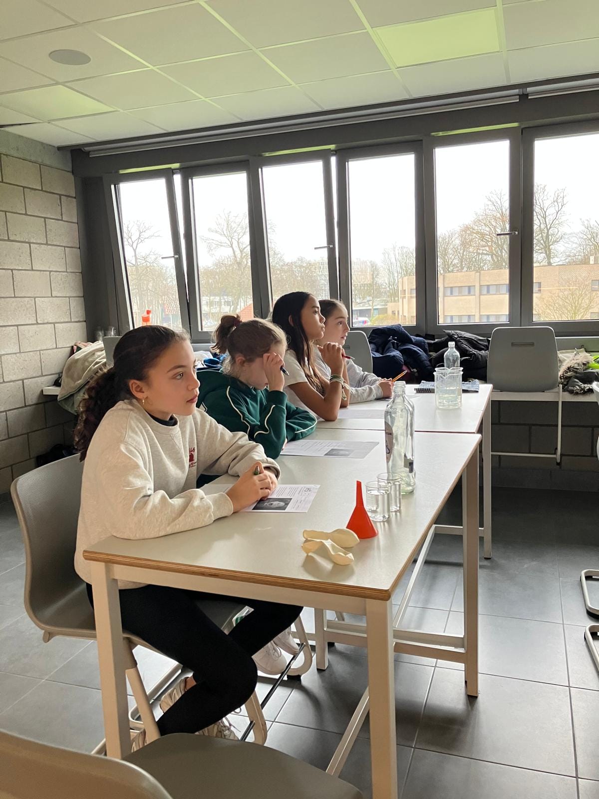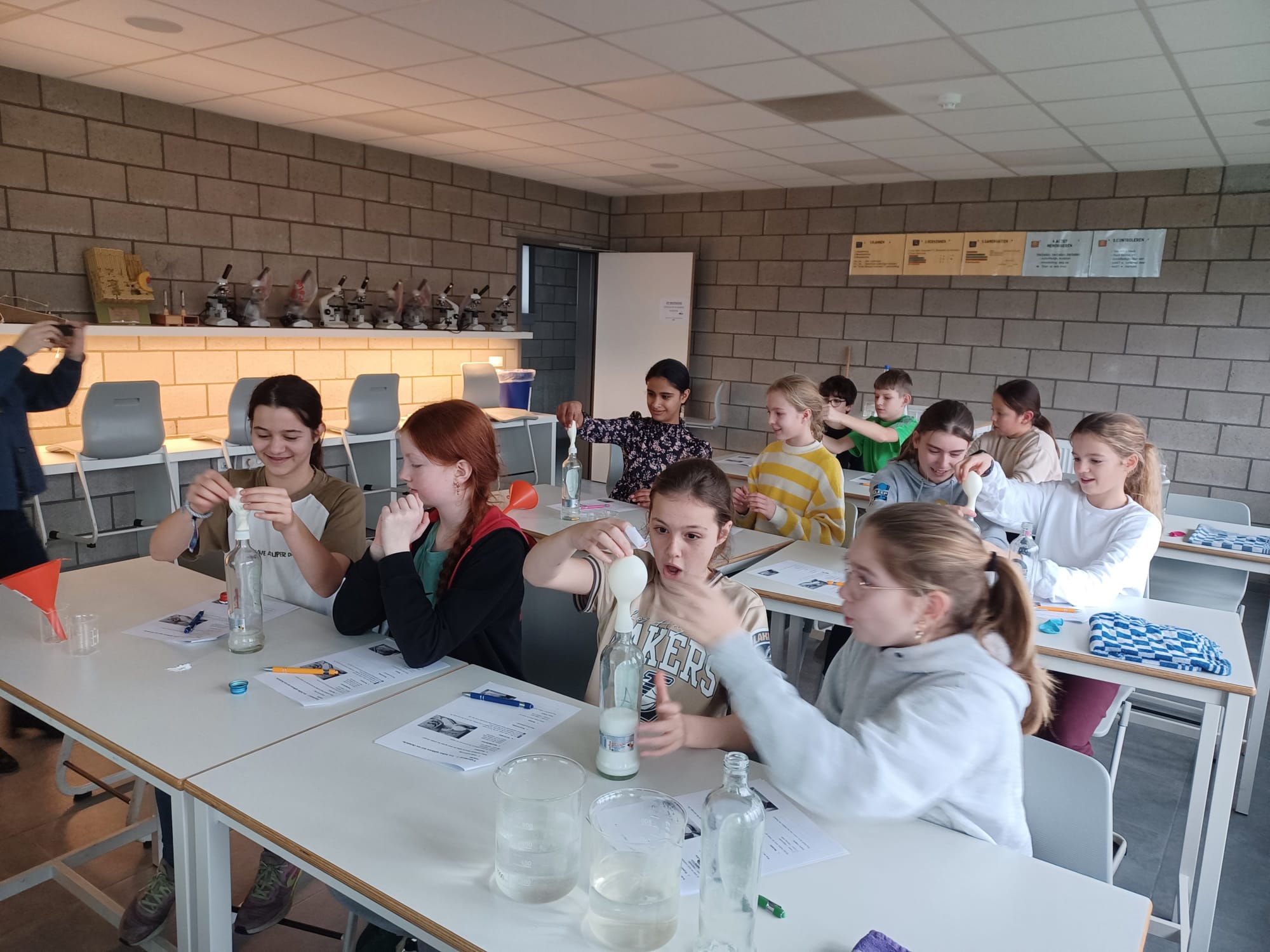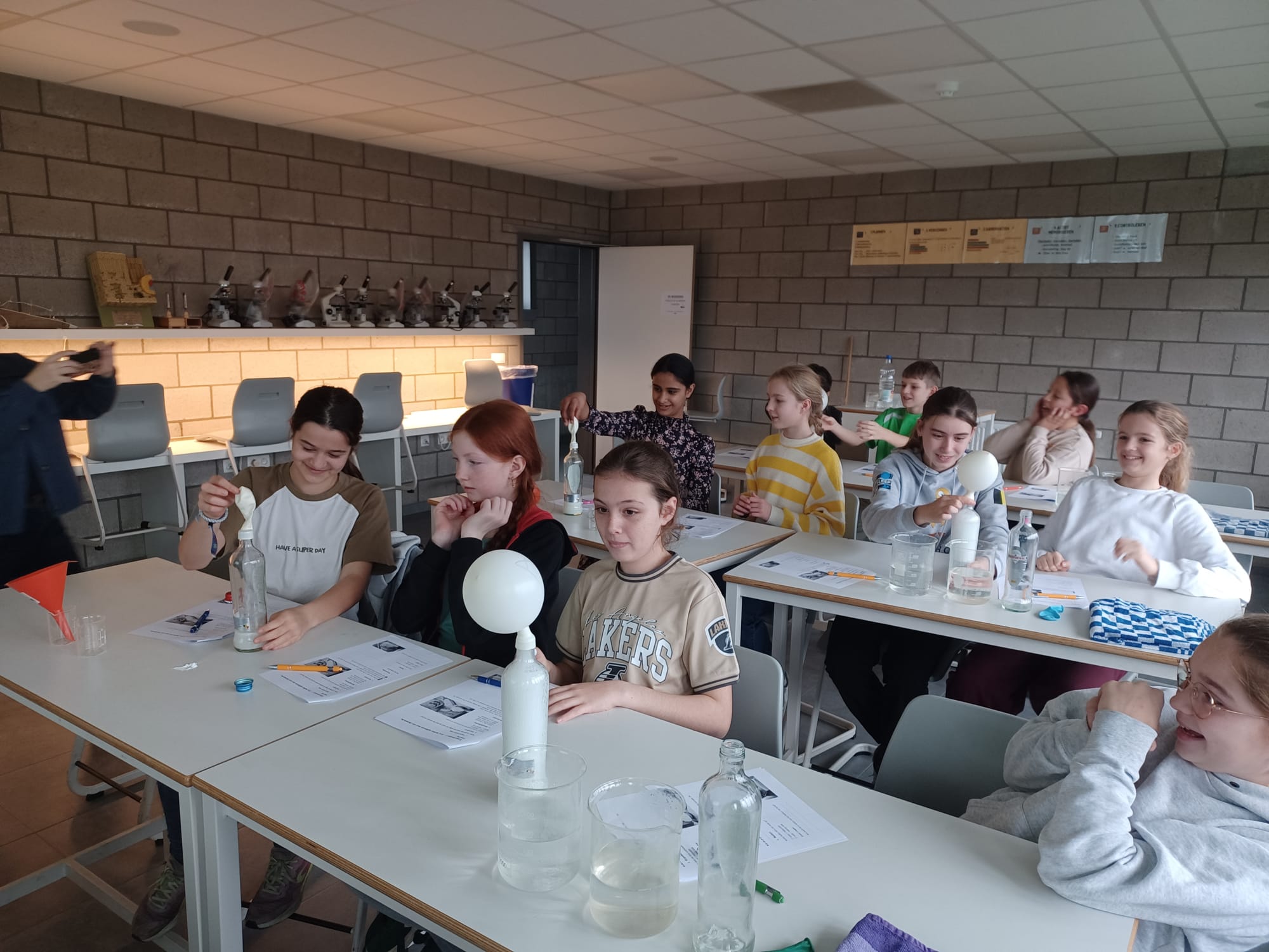 De leerlingen van L1 verzamelden meetlaten, weegschalen, flesjes en potten om op een proefondervindelijke manier op ontdekking te gaan.