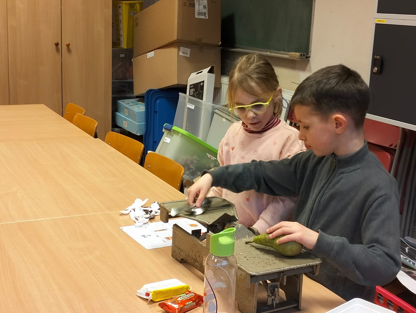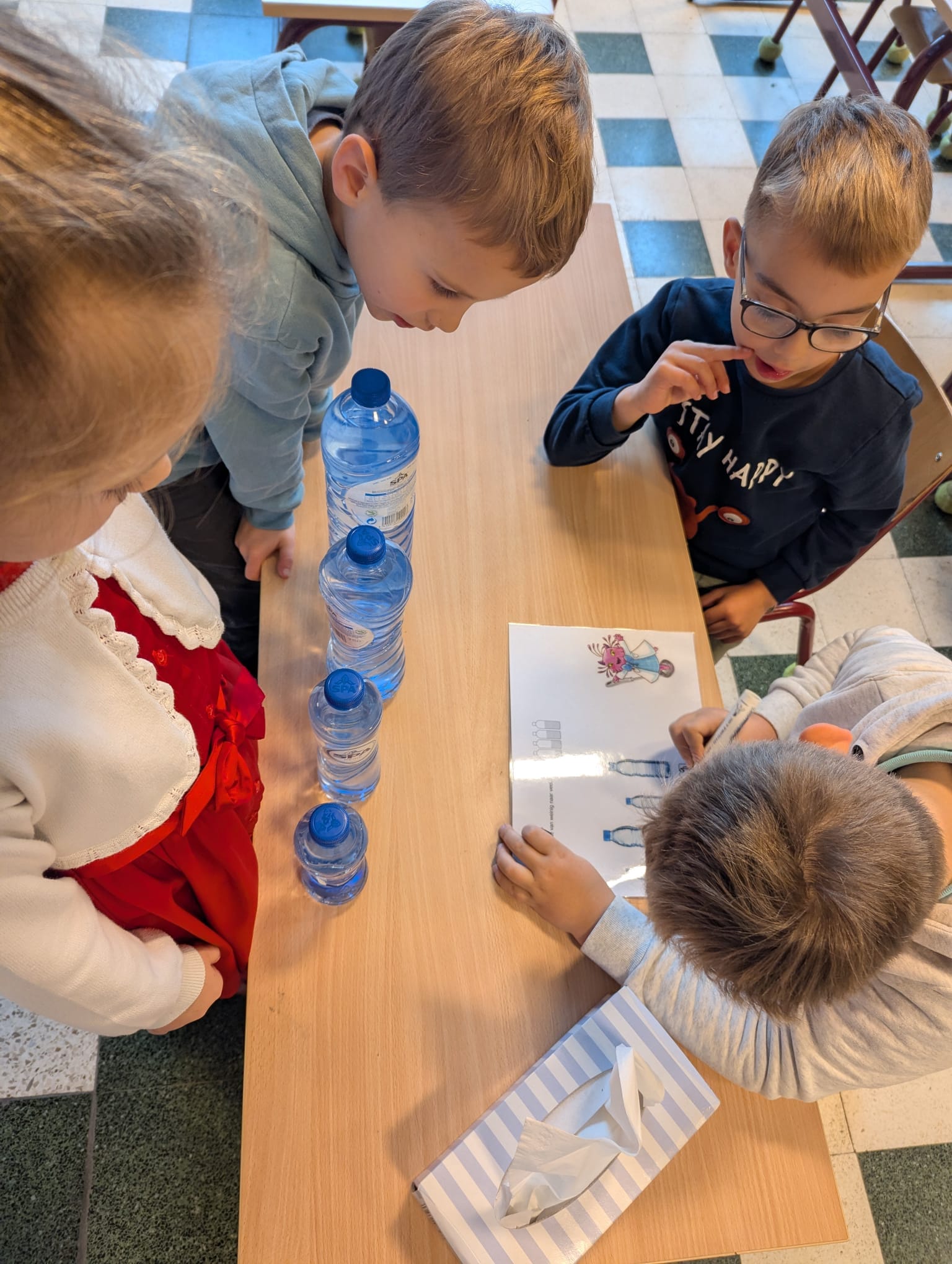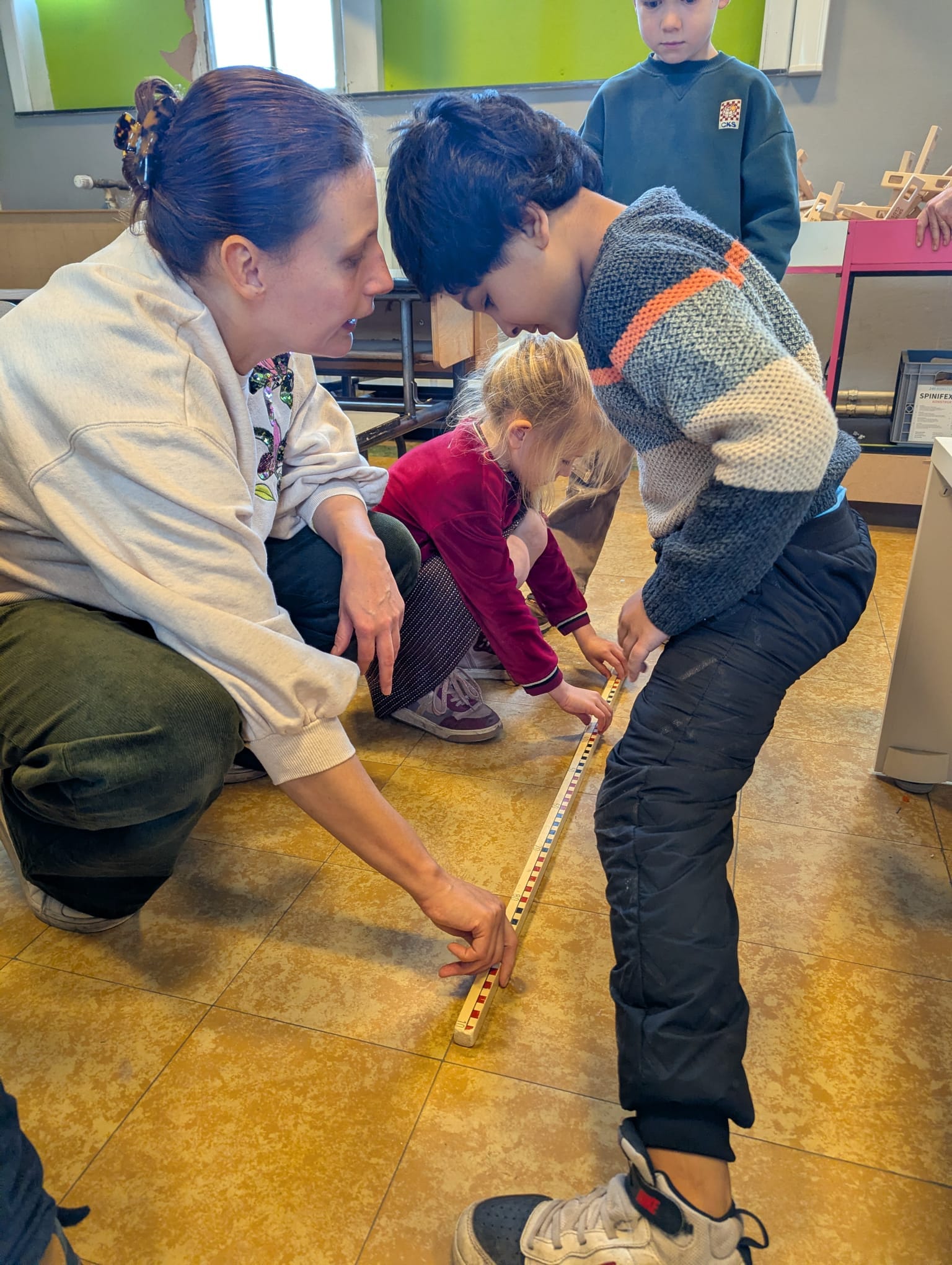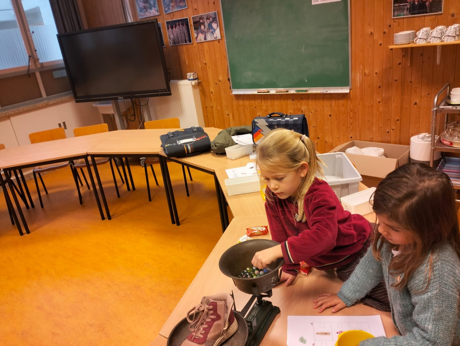 De leerlingen van L1 verzamelden meetlaten, weegschalen, flesjes en potten om op een proefondervindelijke manier op ontdekking te gaan.